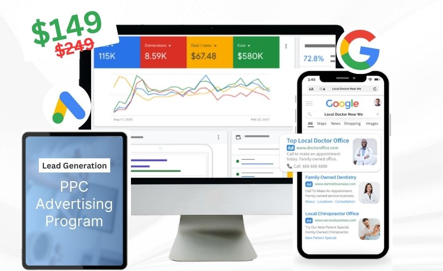 Our Google PPC program focuses on lead generation, including account setup, conversion tracking, account optimization, and much more. This intensive program empowers you to develop a lead generation machine for businesses, and effectively create monthly reoccurring revenue for your business.